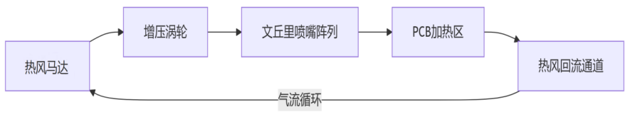 · ?增壓目的?:增加氣流壓力可提升熱風(fēng)穿透力和流速,確保熱量快速均勻滲透至電路板縫隙與元件底部,避免局部溫差。